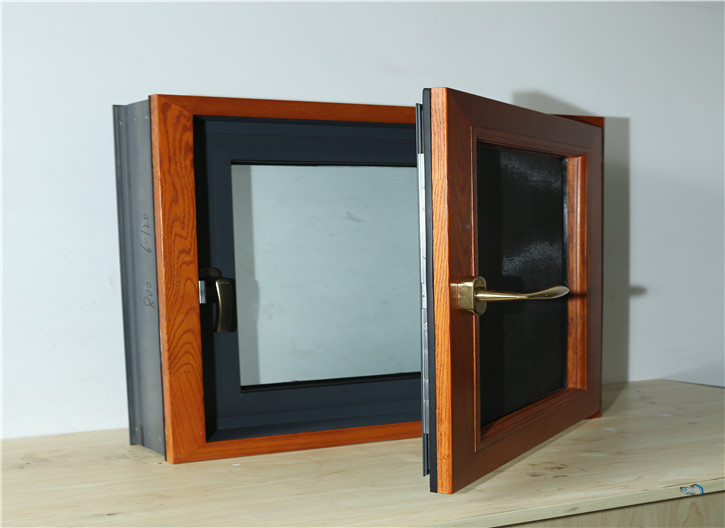 135系列铝木复合窗纱一体,内置纱网,玻璃窗明把手2